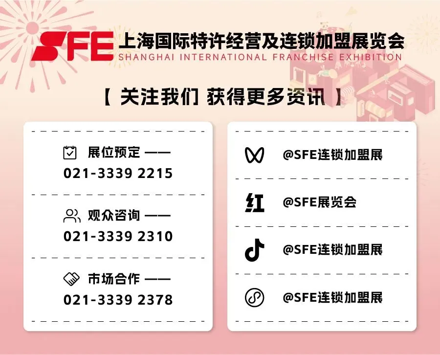 SFE展会始终秉持专业化和市场化的办展理念,持续深耕国内加盟投资市场,凭借专业的内容和优质的服务,成为国内加盟投资市场极具影响力和公信力的优秀平台。期待与各位的再次相遇,共谱连锁加盟事业的新篇章!