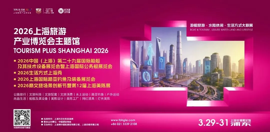 2026年,上海旅游产业博览会主题馆扩容升级了!新加入美陈展,并深度与上海国际游艇展及生活方式上海秀融合,将以8万平方米、1000+家优质展商、5万+海内外观众、150+场的各类丰富活动,包含旅游、游船游艇、路亚钓鱼、户外运动、美陈等20个细分产业链板块的展览规模,为旅游目的地发展滨水和水上旅游、公路旅游、体育旅游等多元化旅游场景,促进文旅消费,引进沉浸式旅游项目、文旅新质生产力企业,建造网红打卡点、开发文旅演艺和快闪活动等,带来更多的“旅游+新生态”优质合作伙伴!