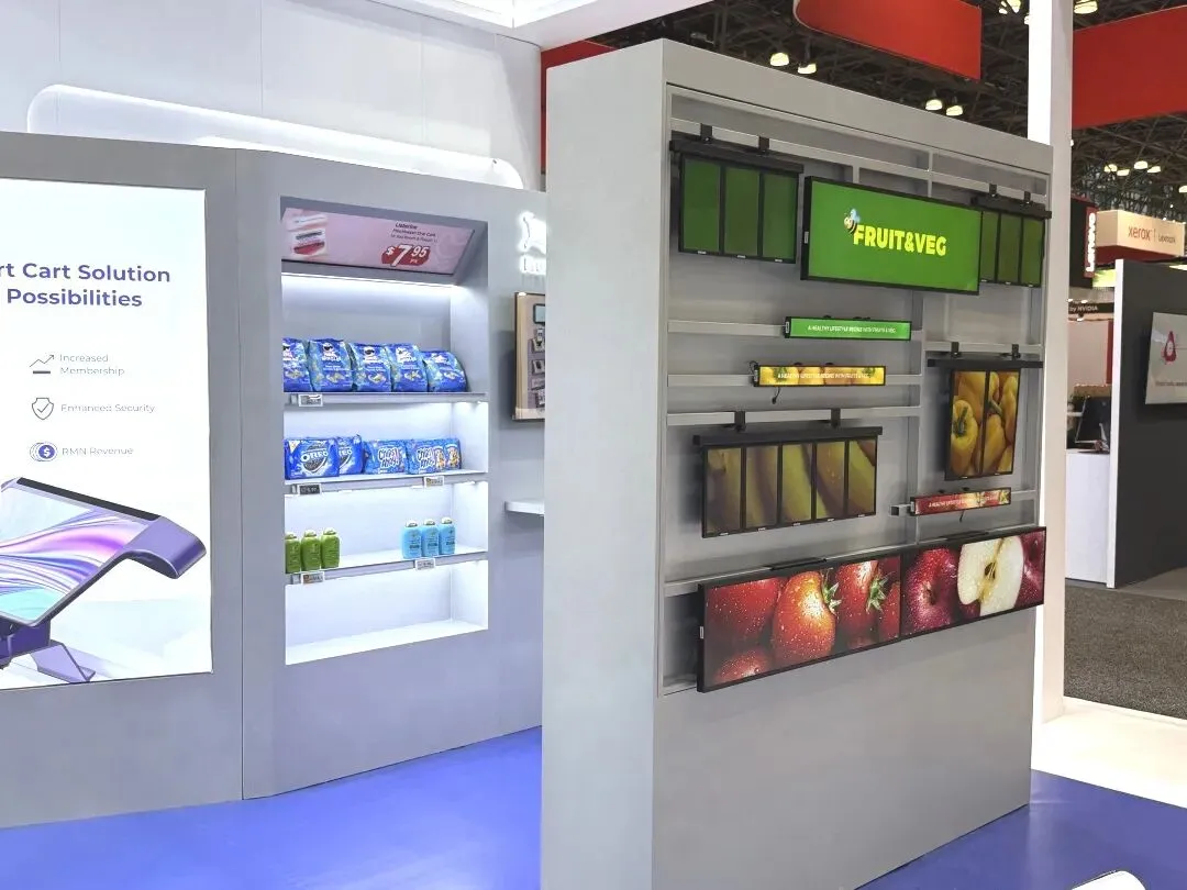 ·模拟货架区嵌入电子价签、智能设备,同步大屏演示 “数字孪生门店” 逻辑,让技术落地场景直观可见;