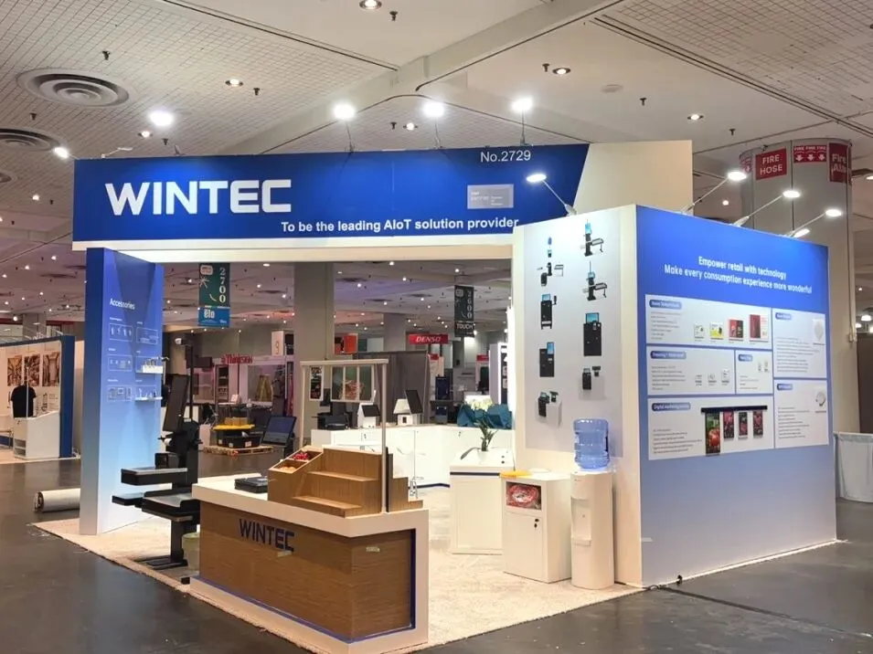 ·场景适配:通过模拟零售收银台、货架配件展示墙,将 WINTEC 的技术解决方案嵌入实际场景,让·产品功能更直观;