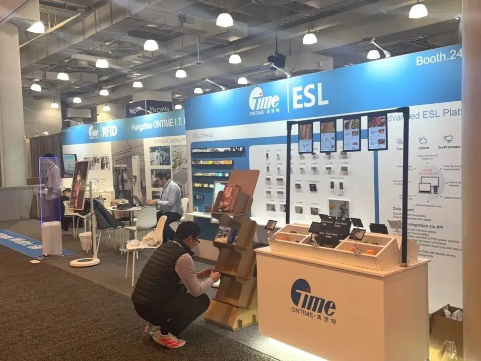 美思特的展台,以 “蓝白专业风 + 技术场景化” 精准匹配其 RFID/ESL 解决方案商定位: