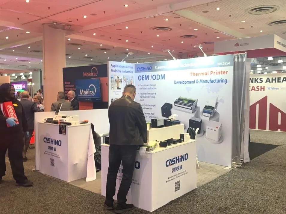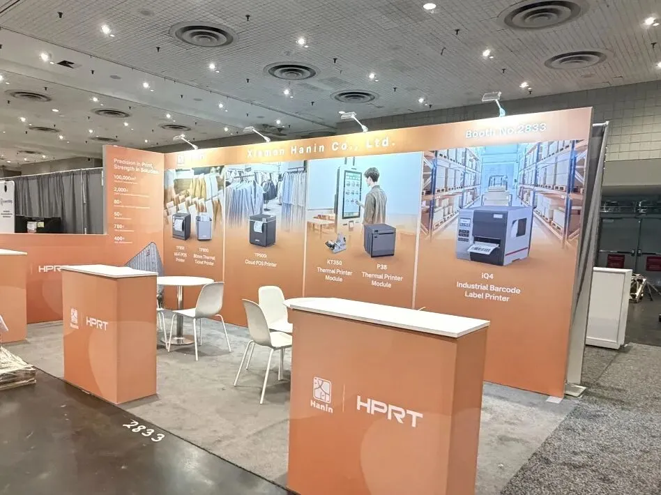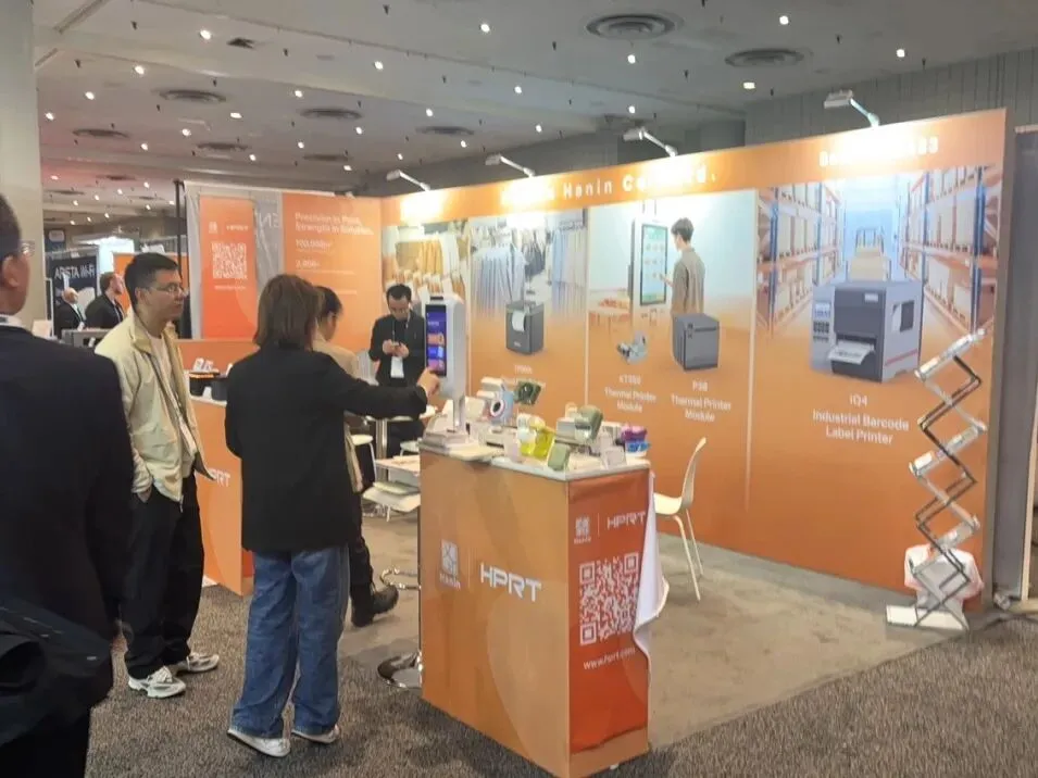 ·视觉与展示:以纯净白为主调,背景主画面还原现代零售自助扫描场景,搭配品牌合作案例(如 HP、LEVI'S)强化信任背书;展台嵌入设备体验区,让观众直观感受自助扫描产品的操作逻辑;