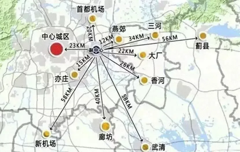 北京城市副中心与河北省廊坊北三县地区协同发展,发挥城市副中心对周边的辐射带动作用,实现通州区与河北省廊坊北三县地区统一规划、统一政策、统一标准、统一管控,促进协同发展。