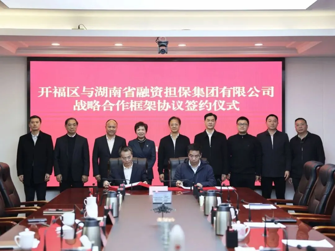 1月12日上午,湖南省融资担保集团有限公司与开福区人民政府战略合作框架协议签约仪式举行。湖南省融资担保集团有限公司党委书记、董事长胡茹琰,开福区委副书记、区长高伟见证签约。