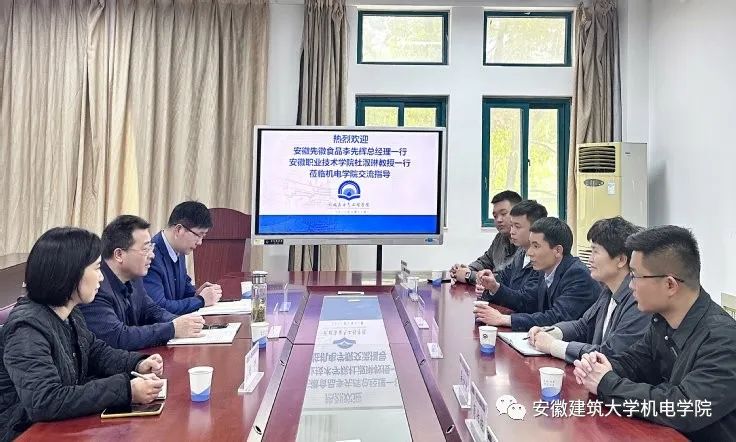 3月31日下午,安徽先徽食品有限公司董事长李先辉先生,会同安徽职业技术学院现代商务学院院长杜淑琳教授一行到访机电学院开展调研交流。院党委书记叶少宝主持会议,副院长陈中、工业设计系主任刘牛及工业设计系教师参加座谈。
