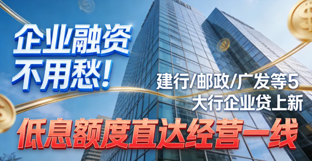 当前正值政策红利窗口期,央行持续实施适度宽松货币政策,社会综合融资成本保持低位运行。这波5大行企业贷新品福利,正是企业借力低成本资金实现升级的黄金机遇!资金周转不等人,商机错过难再来!现在咨询申请,即可享受专属客户经理1对1指导,材料审核绿色通道,让资金快速到位,助力企业抓住发展机遇。别再让资金短缺拖慢脚步,建行、邮政、广发等5大行企业贷已备好“资金燃料”,低息额度直达经营一线,让企业经营更有底气、发展更有动力!立即联系属地银行网点,解锁专属融资方案,共赢财富未来!