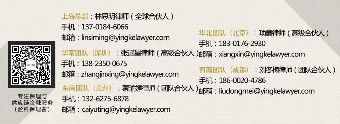• 本微信文章中的信息仅供一般参考之用,不可视为详尽说明,亦不构成盈科保理与供应链金融律师团队的法律或其他专业建议或服务。盈科保理与供应链金融律师团队不对任何主体因使用本文内容而导致的任何损失承担责任。