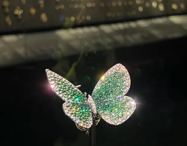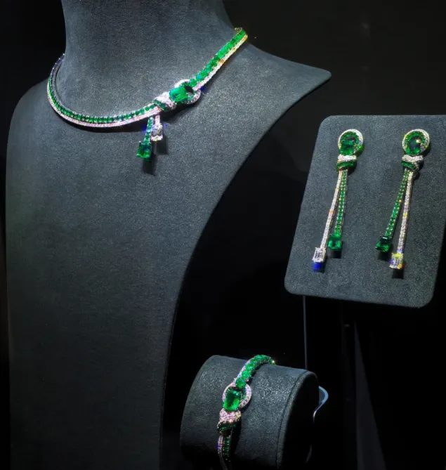 工作人员说光是打磨镶嵌就花了两千多个小时,整条项链属于今年的高定款,平时根本不拿出来卖的。这种级别的东西已经不只是装饰品了,放博物馆当艺术品都够格。