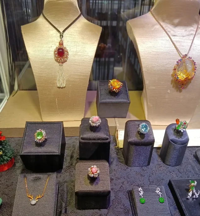 这些彩色宝石搭在一起不但不乱,反而有种说不出的协调感。可能宝石这东西就是这样吧,不分东西方,漂亮的东西大家都爱看。