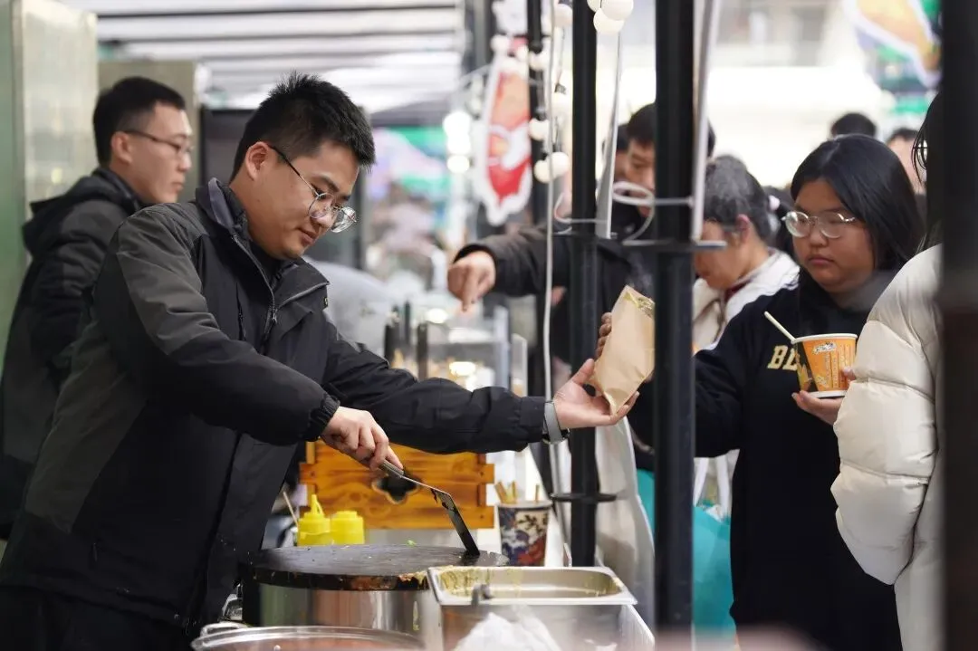 摊位扩容至近70家,新增东北炭火大油边、烈火牛肉、冬季小火锅等特色热力美食,并汇聚缙云烧饼、可口利巧克力等本地名品与网红品牌,满足多元味蕾。