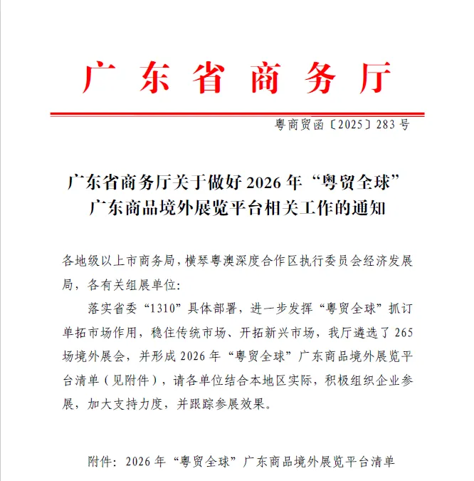 凯宸会展再一次入选2026年度“粤贸全球”广东商品境外展览平台的官方组展服务单位。此次入选的展会包括阿塞拜疆国际贸易展、格鲁吉亚国际贸易展以及沙特吉达国际建材及装饰展三大国际品牌展会。