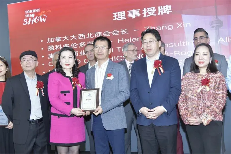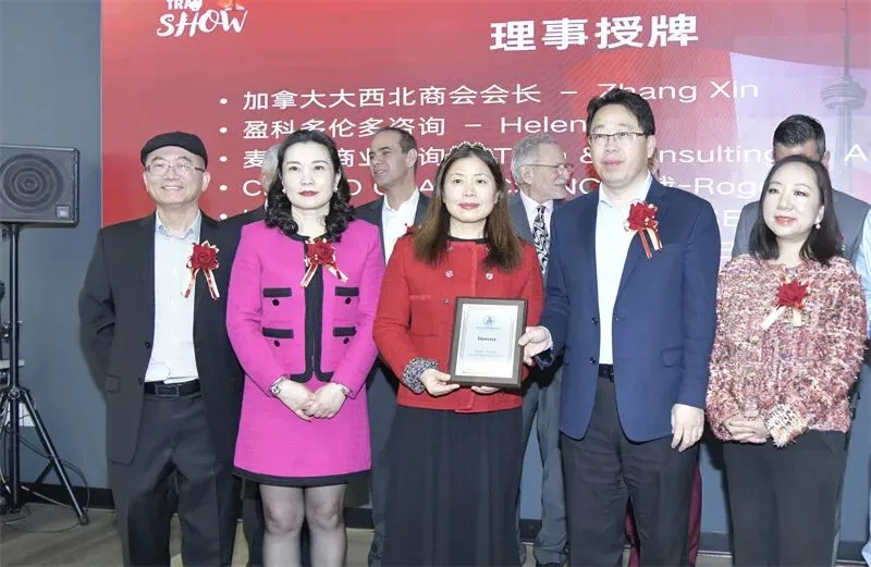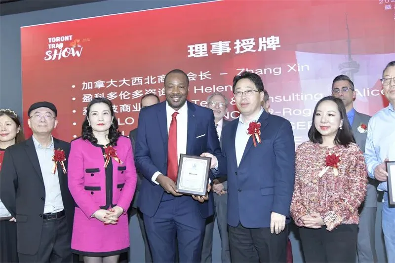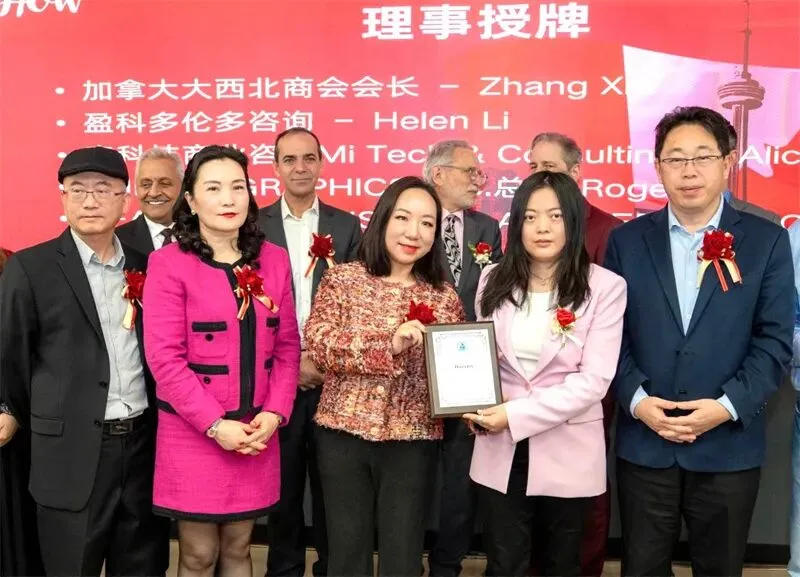 发布会期间还举行了理事证书颁发仪式。加中企业出海服务中心新增五位理事,分别是:非洲国际贸易大使王大伟(Louis Claude Hermann Mefire)、加拿大大西北商会会长Zhang Xin、盈科多伦多咨询负责人Helen Li、麦科技商业咨询负责人Alice Ding,以及CHEELO GRAPHICS INC.总裁Roger。