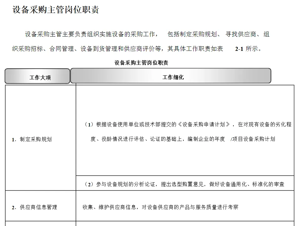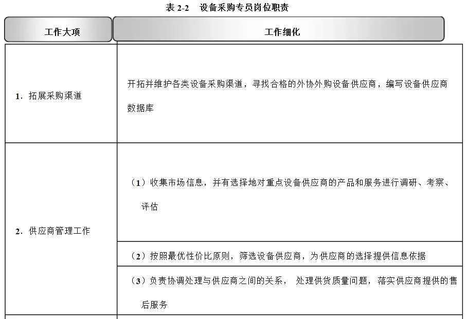 二、设备采购专员岗位职责