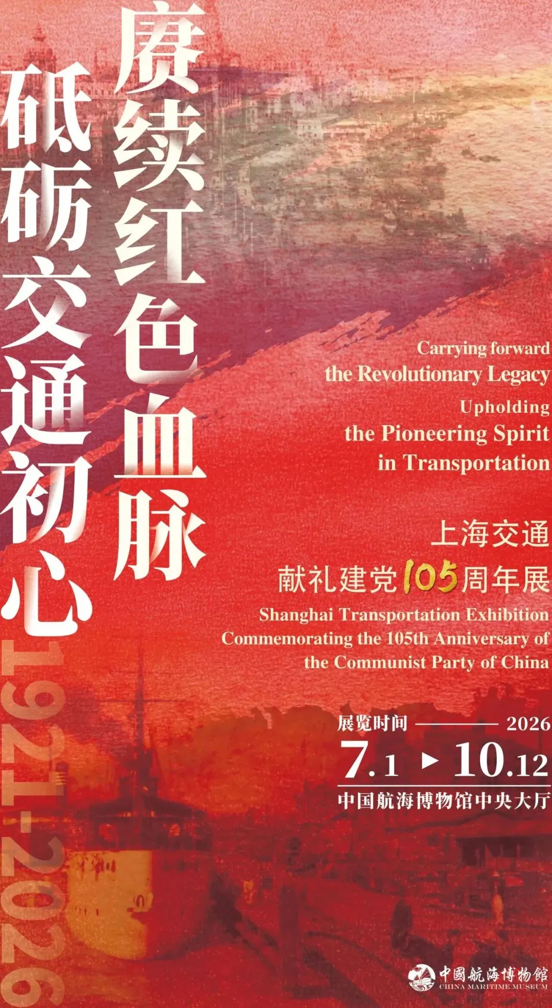 光影流转,岁月无声。展览甄选出建院百年来的珍贵历史照片与档案影像。从皇宫禁地到公立博物馆,从战乱守护到盛世修缮,每一帧影像都直观呈现其历史变迁与文化魅力。“潮润素笺:纸与水的修复对话”是中国航海博物馆推出的首个纸质文物修复主题原创展览。展览以"纸"与"水"的相生相克关系为主线,通过修复的源头、原则与实践、修复之外的延续三个维度,系统展示纸质文物从受损到复原的全过程。展览将带领观众深入理解纸质文物的脆弱与坚韧,展现文物修复工作的科学性与人文价值,彰显博物馆在文化遗产保护领域的专业追求。1949年以来,中国军事航海事业走过了波澜壮阔的奋斗征程,谱写了从无到有、由弱到强的时代篇章。如今,一支体系完备、功能融合的现代化海军正在形成,中国海军以开放姿态走向世界,成为维护和平的重要力量。本展览荟萃馆藏军事精品船模,以时间与舰型双线并进,呈现近现代中外海军装备百年演变。通过各国名舰的对比与呼应,展现世界军事航海文明的多样发展与共通轨迹。赓续红色血脉 砥砺交通初心:上海交通献礼建党105周年展依托独特地理位置优势及强大交通优势,上海在革命年代始终扮演重要角色。展览将聚焦二十世纪初进步青年自上海赴法勤工俭学、上海交通在中共一大召开与党的诞生、解放战争中公交三烈士为保护城市交通命脉而就义等历史,展现由交通承载的红色基因,这些精神至今仍激励着上海交通人,在新征程上续写新篇章。展览时间:2026年7月——2026年10月