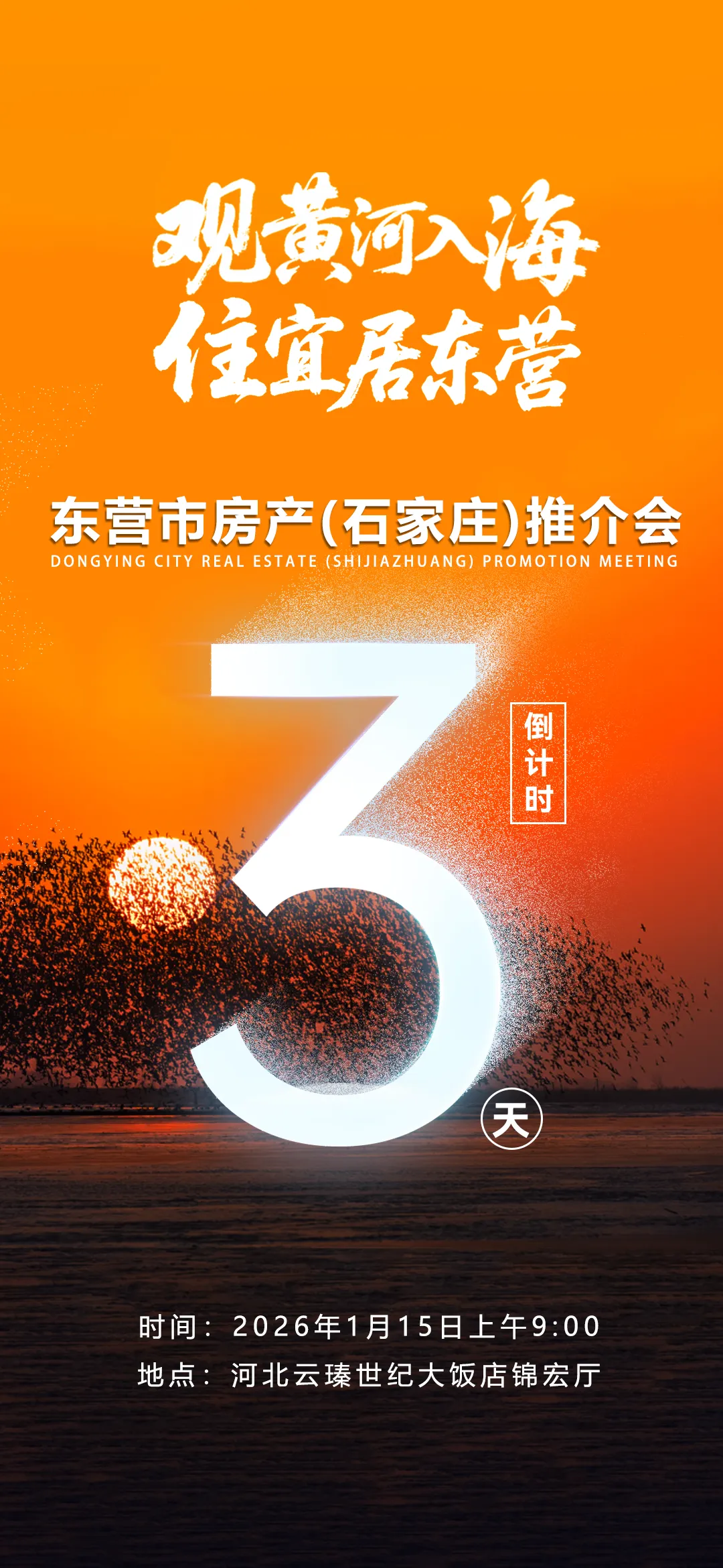 为全面展现东营城市魅力与发展潜力,进一步促进房地产市场活力,由东营市房地产业协会主办的“观黄河入海 住宜居东营”2026东营市房产(石家庄)推介会,将于2026年1月15日上午在河北云瑧世纪大饭店锦宏厅举行。