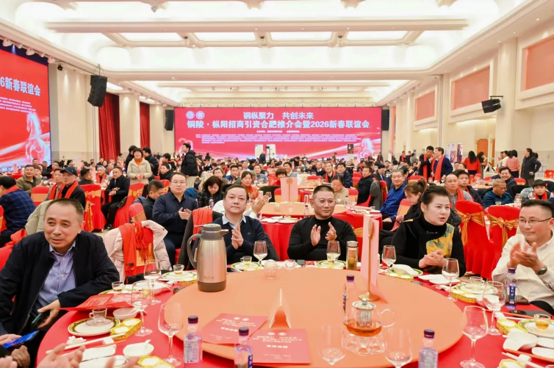 1月3日,包河区枞阳商会与合肥市铜陵商会联合举办“铜枞聚力 共创未来”铜陵•枞阳招商引资合肥推介会暨2026新春联谊会。枞阳县人大常委会主任吴峰表示,枞阳将始终把优化营商环境作为重中之重,全力当好服务企业的“店小二”,以最大诚意、最优服务迎接乡贤回归、企业入驻。铜陵市委统战部副部长、市工商联党组书记杨益安期盼广大乡贤常回家看看,亲身感受家乡的日新月异;呼吁乡贤企业家返乡兴业,把前沿技术和优质项目带回家乡,助力家乡产业升级;希望各界朋友持续关注铜陵、宣传铜陵,为建设现代化幸福铜陵汇聚更多智慧力量。招商推介环节中,铜陵市文旅局、铜陵经开区、枞阳县招商服务中心先后登台,全方位展示了铜陵“诗里画中”的文旅底蕴、经开区“筑巢引凤”的投资活力以及枞阳“吴楚分疆”的区位优势与发展潜力,向在场企业家发出了共赴家乡发展的诚挚邀约。现场,“铜陵市全国异地商会战略合作联盟”同步正式启动。当晚,举办了“铜枞聚力 共创未来”交流晚宴暨2026新春联谊会。