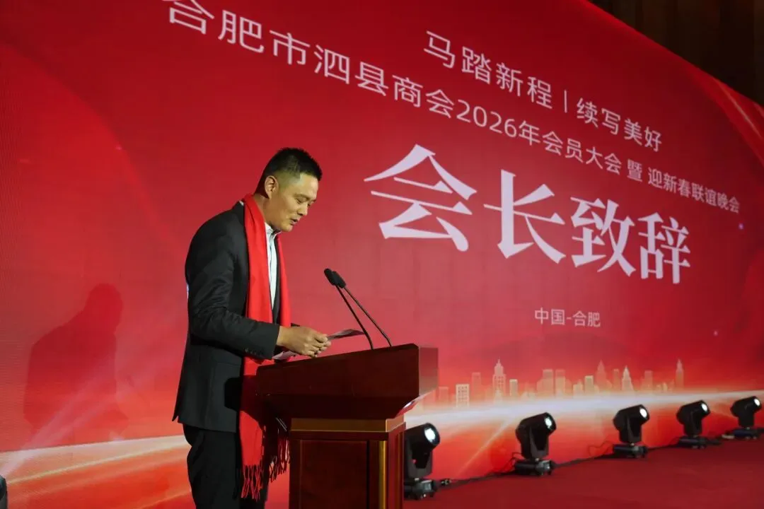 1月3日,合肥市泗县商会举行2026年会员大会暨迎新春联谊晚会。会上,会长刘梦寒作商会工作报告,回顾2025年,展望2026年。泗县工商联主席周人杰表示,合肥市泗县商会则是连接乡情、汇聚泗县籍企业家合力的重要平台和纽带。商会组织了乡情联谊、政企交流、产业对接、返乡助学、爱心助农等一系列有温度、有实效的活动,在团结凝聚会员企业、促进两地经贸文化交流、助力家乡发展等方面做了大量卓有成效的工作。希望商会持续打造品牌服务平台,当好家乡“代言人”,牵线搭桥促两地资源对接,常回家寻商机、谋发展。