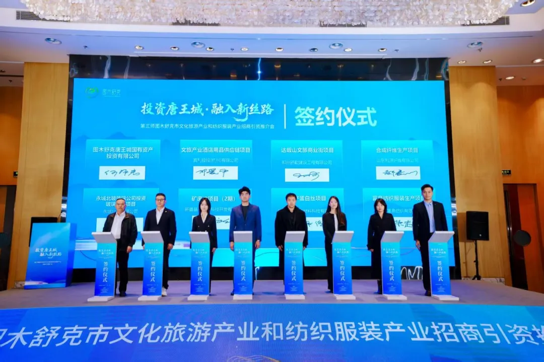 2026年1月9日,第三师图木舒克市“丝路唐王城·粤聚新动能”文化旅游产业和纺织服装产业招商推介会在广州举办,广东文旅投融会客厅作为协办单位深度参与,并受邀出席活动现场,助力两地产业对接。本次推介会锚定粤港澳大湾区产业高地资源,吸引来自广州、深圳、东莞等珠三角核心城市120余家企业代表参加。现场完成7个重点项目签约,总金额6.12亿元,为师市文旅融合发展和纺织服装产业集群化发展注入强劲动能。