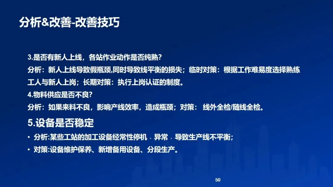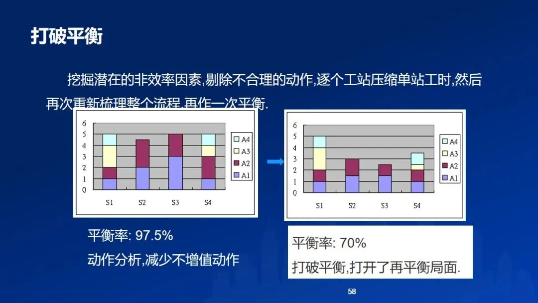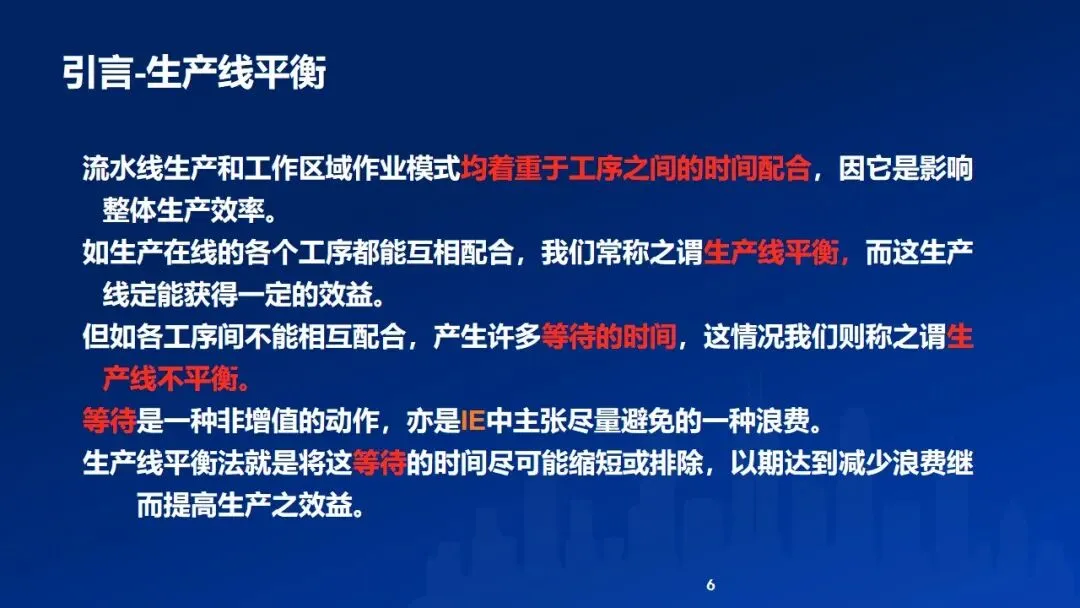 生产线平衡是一种通过调整各工序作业负荷、使其时间尽可能接近的关键工业工程技术。其核心目标在于消除因工序间不平衡造成的等待时间与生产浪费,从而提升整体效率、缩短周期、稳定质量并增强生产柔性。实现生产线平衡需系统性地展开八大步骤:从数据收集与浪费识别入手,借助方法研究、山积表分析与ECRS原则进行改善,并着重消除瓶颈工站——可通过工站重排、动作经济原则、机械化与自动化、提升作业技能及增配人员等方法实现。此外,还需应对位置、设备、清洁与疲劳等约束条件,并在流程稳定后主动“打破平衡”,通过持续优化进一步释放产能。最终,通过标准化与推广,使改善成果固化并延伸至相似产线,实现生产系统的高效与均衡运作。