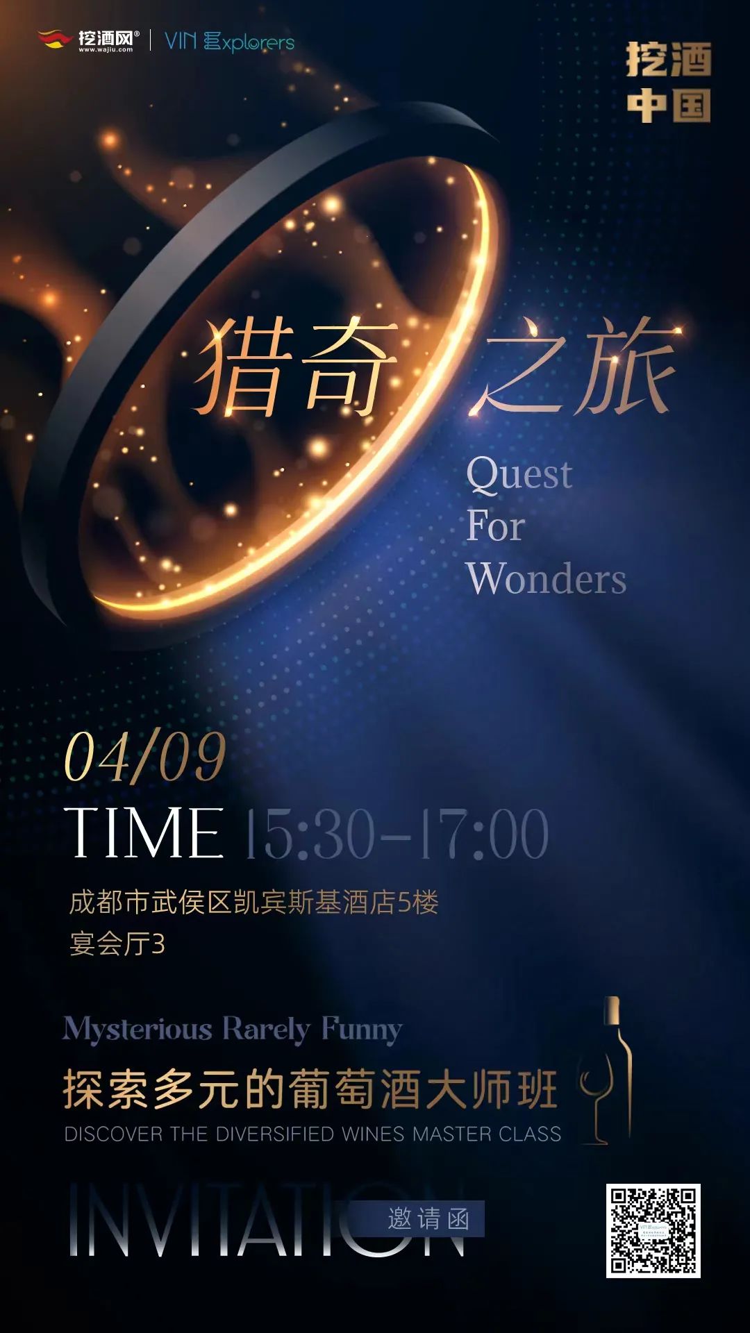 WBO获悉,今年挖酒网除了携世界主流产区的众多知名酒庄参展外,还将于4月9日15:30-17:00,在成都凯宾斯基酒店5层宴会厅3带来一场别开生面的猎奇之旅-探索多元的葡萄酒大师班活动。