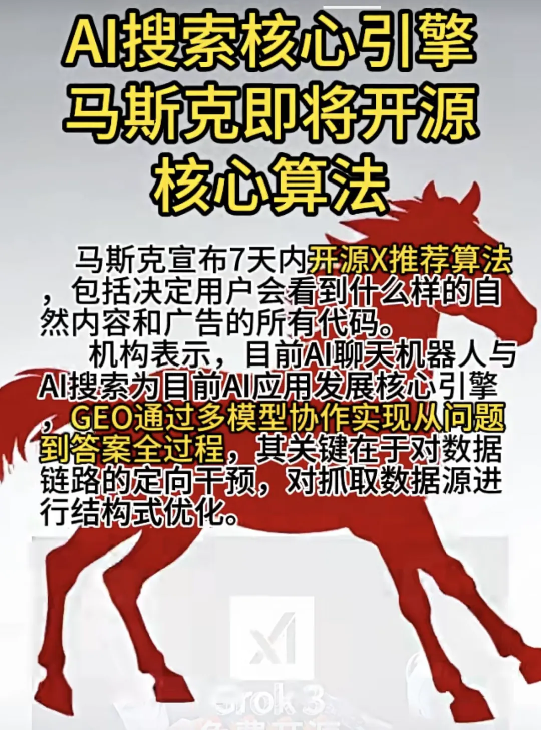 “7天内开源X推荐算法,包含内容与广告的所有代码。”埃隆·马斯克近日的宣布,迅速点燃了全球科技与资本市场。消息传出后,A股市场GEO概念板块应声而起,多家上市公司市值一日之间飙升数百亿。