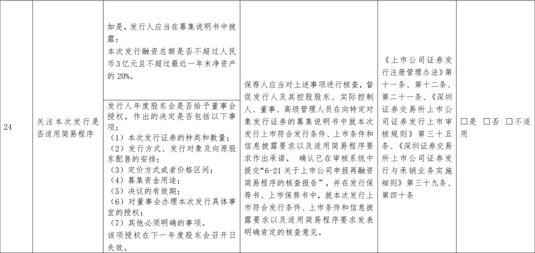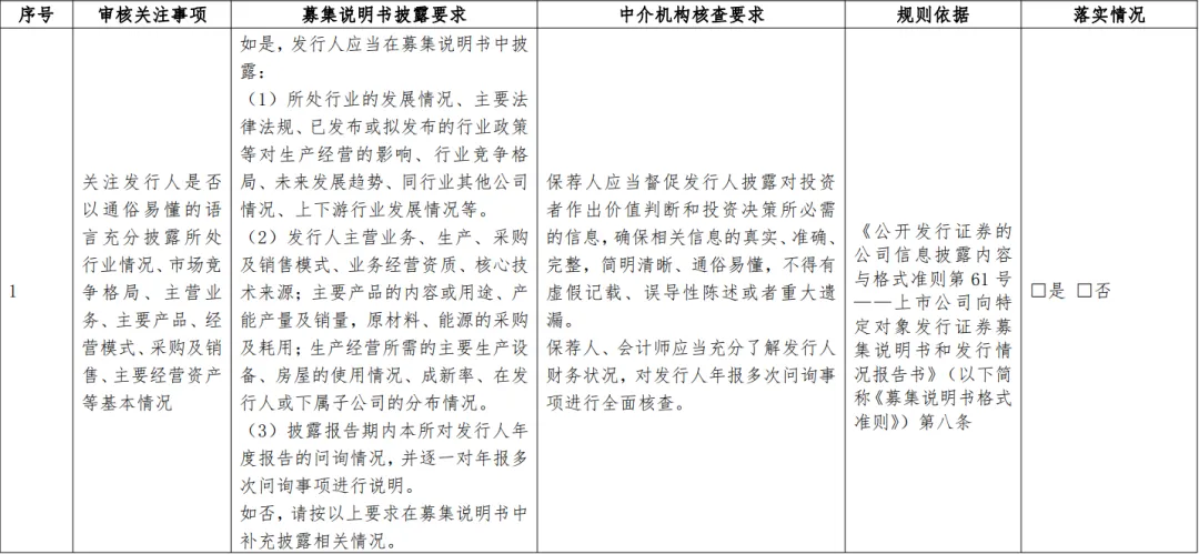 第三条 保荐人应当根据募集说明书等文件披露情况和核查工作实际开展情况,在发行上市审核业务系统中下载《上市公司向特定对象发行证券审核关注要点(简易程序)落实情况表》(以下简称《审核要点》)并进行填报。