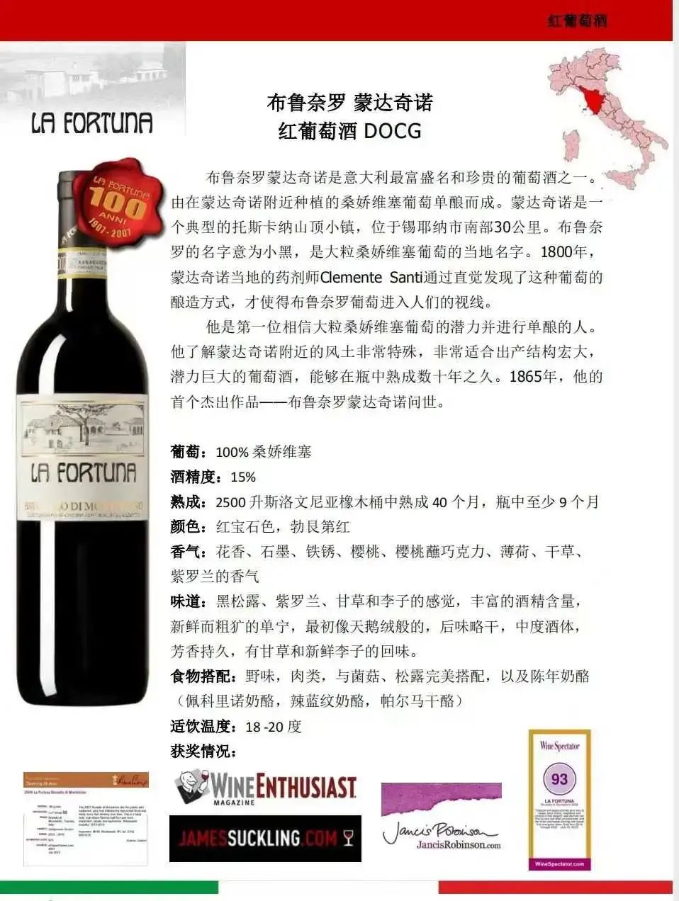 布鲁奈罗的全称是“蒙塔希诺-布鲁奈罗”(Brunello di Montalcino),是产自意大利中部托斯卡纳蒙塔希诺镇的DOCG级别红葡萄酒,被誉为“托斯卡纳皇冠上的明珠”。