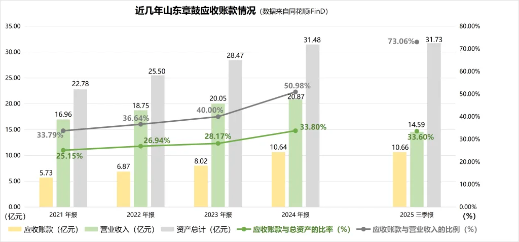 应收账款同比激增32.58%,占总资产比例突破30%。