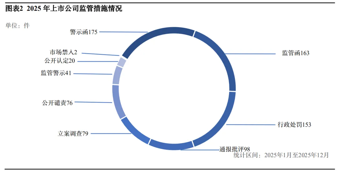 证监会及派出机构的监管类型:立案调查、行政处罚(立案调查结案后)、市场禁入、责令整改、监管谈话、警示函、监管关注、公开认定、口头警示、监管意见函等。