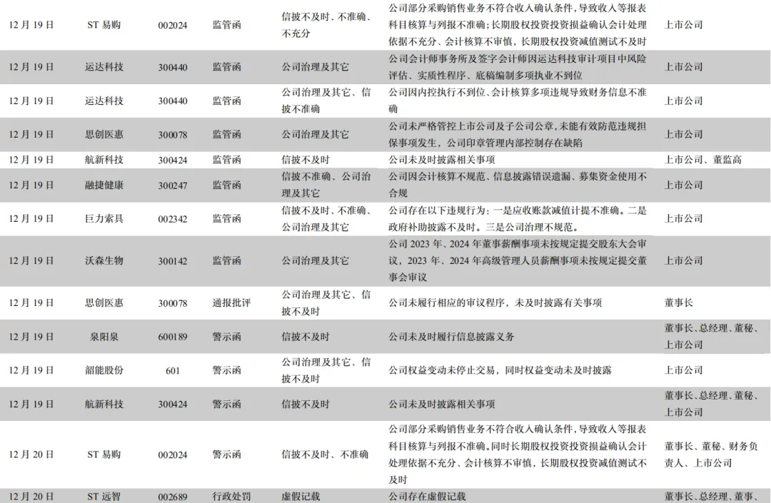 通过对上交所、深交所、北交所及公司公告的搜索,2025年12月共有68家公司接收到106份监管函件。具体如下: