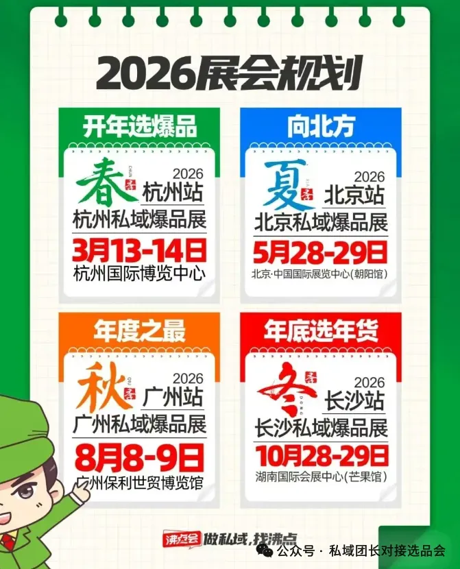 3月13-14日:2026春季新品爆品货源展1000+供货商集中展示,98%头部渠道现场选品对接。