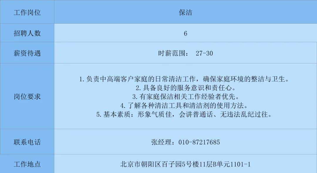 朝阳区人力资源公共服务中心推送岗位