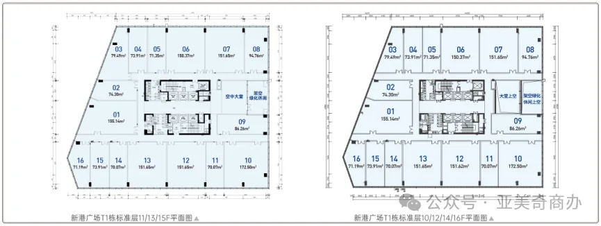 ·一层大堂层高11.9m,面积约555㎡(T1)