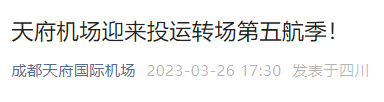 根据成都天府国际机场官微报道,自3月26日00:00起,原在双流机场运行的国际客运航班全部转场至天府机场,港澳台地区客运航班临时转场至天府机场,中国南方航空的航班部分转场至天府机场。