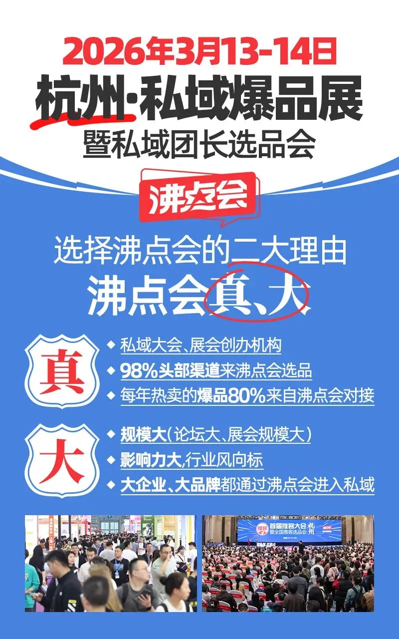 值得一提的是,98%的TOP私域团长都会通过沸点会选品,这也印证了沸点会在私域渠道对接中的核心地位。