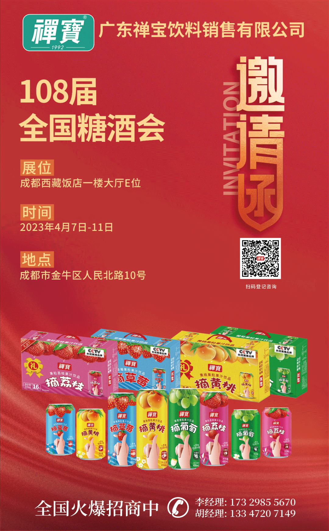 4月7日-4月11日,禅宝亮相第108届春季糖酒会,让经销商现场感受禅宝饮品的魅力!