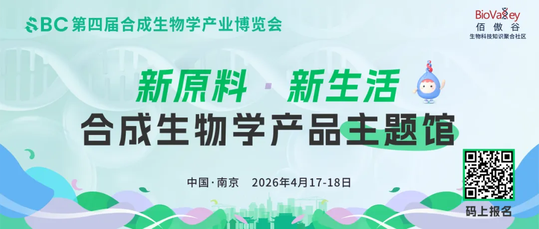 2026第四届合成生物学产业博览会将于2026年4月17-18日在南京召开,本次大会特设“新原料·新生活”合成生物学产品主题馆。旨在全面展示合成生物学从技术到产品、从实验室到商业化的全链条创新生态。这里不仅是一场科技与产业变革的展览,更是一个为您深度链接机遇、放大品牌声量的共创生态平台,诚邀全球创新企业共筑未来。