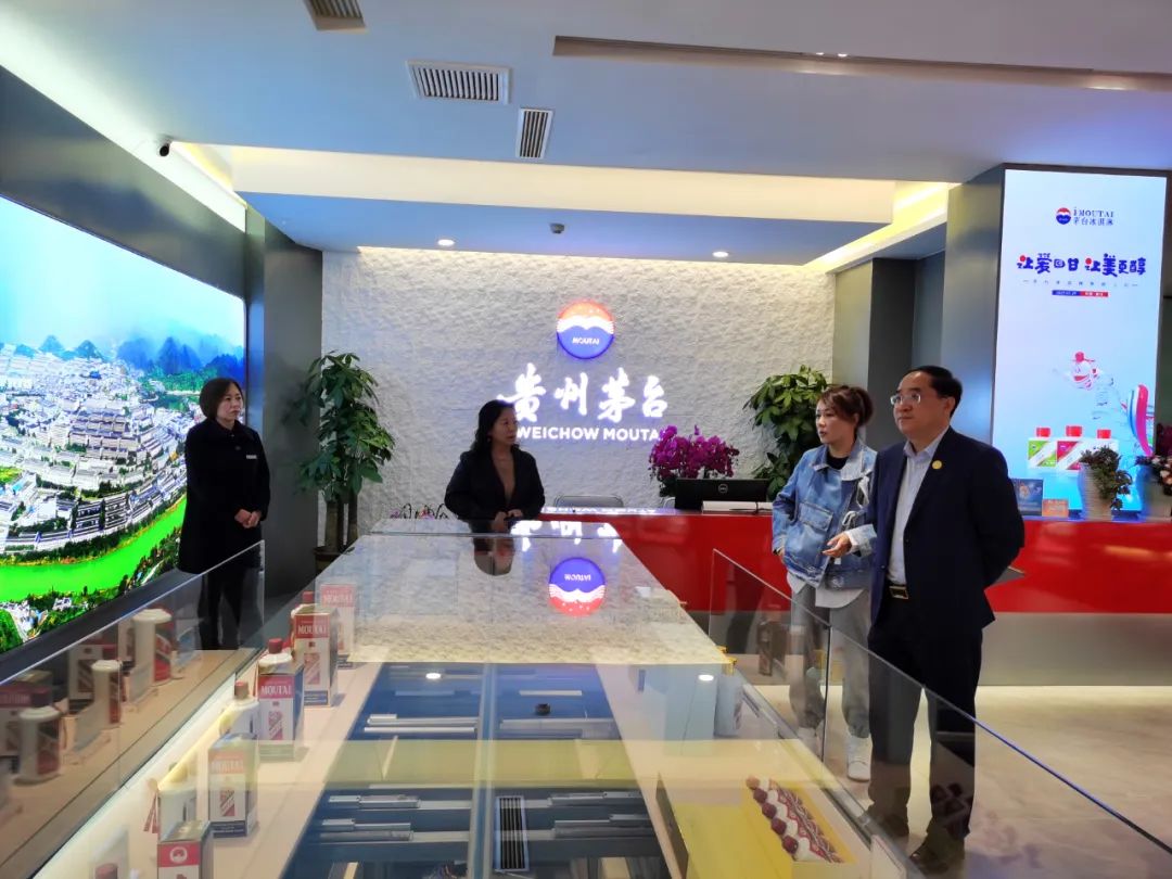 位于车站路顺诚大厦底商的银丰商贸有限公司是承德市最早一家茅台酒专卖店,2022年重新装修开业后已是贵州茅台的第三代专卖店。进入店内,浓郁的茅台酒文化和科技的融入感让人耳目一新,优质周到的服务更是让人如沐春风。银丰商贸总经理刘威热情欢迎刘磊斌理事长一行的到来,据刘威介绍,贵州茅台顺诚大厦专卖店早在2003年开始运营,至今已经走过20载的风风雨雨,陪伴了一代喜爱茅台酒的承德人成长。它不仅见证了茅台专卖店第一代到第三代的转变,更是承德市唯一一家靠实力升级为第三代的贵州茅台酒的专卖店。长期以来,银丰商贸贵州茅台专卖店坚持文化赋能,借助科技赋能全面升级,店内所有酒柜运用最先进的声控和遥控技术,售货人员再也不需要将一个个柜门打开,而是对着柜门说出指定“暗号”就可以成功开启柜门,满满科技感的设计,让顾客拥有全新的体验。在店面设计上,第三代茅台专卖店融入了更多的茅台酒文化元素,让顾客们在买酒的同时能够沉浸式体验感受茅台酒文化,从而对茅台酒拥有更深刻的了解。功能区域的设计在突出明星产品的同时,又兼顾了经典产品和新产品,把每一款产品的特色、内涵和价值清晰地呈现给消费者。除了能够了解茅台酒文化之外,专卖店还新增加了品鉴区,这也意味着顾客可以在雅致、舒适的品鉴区里品饮佳酿,提升顾客的享受服务体验。