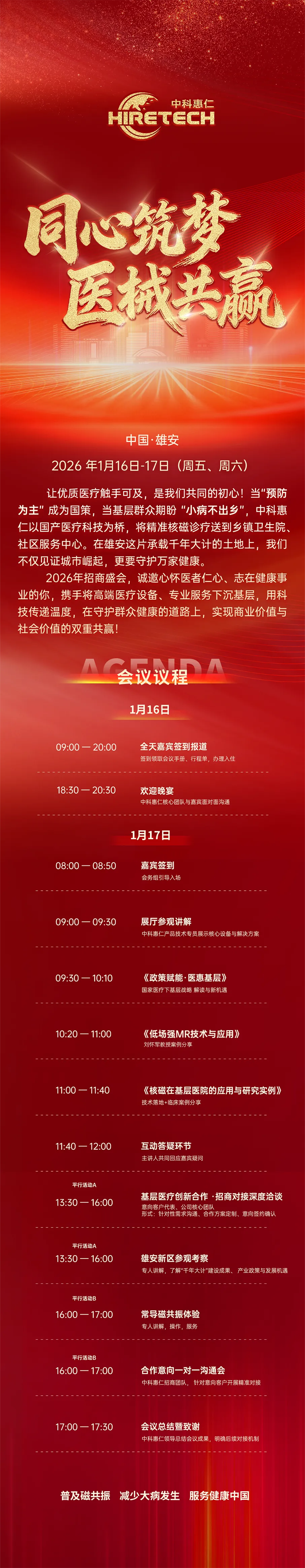 “同心筑梦 医械共赢”招商会将于2026年1月16日-17日(周五、周六)在中科惠仁总部(河北保定)举办!