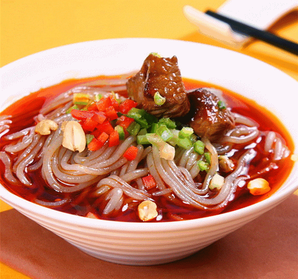 重庆酸辣粉:是重庆城区广为流传的一种地方传统名小吃,历来就是重庆人的最爱之一 。手工制作的主粉由红薯,豌豆淀粉为主要原料,然后由农家用传统手工漏制。