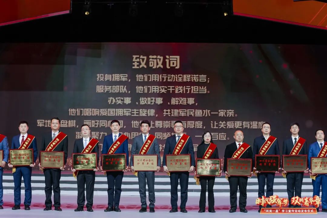 时代强军梦,双拥著华章。为纪念延安双拥运动80周年,3月26日,四川省“两美一星”(四川省最美拥军人物、四川省最美退役军人、四川省退役军人就业创业之星、四川省社会化拥军单位)学习宣传活动发布仪式在四川电视台演播厅隆重举行。舍得酒业等20家单位被推选为首批“四川省社会化拥军单位”,公司产研总部生产保障中心副总经理刘志剑、退役军人服务站站长梁劲松参加活动。
