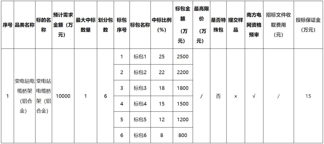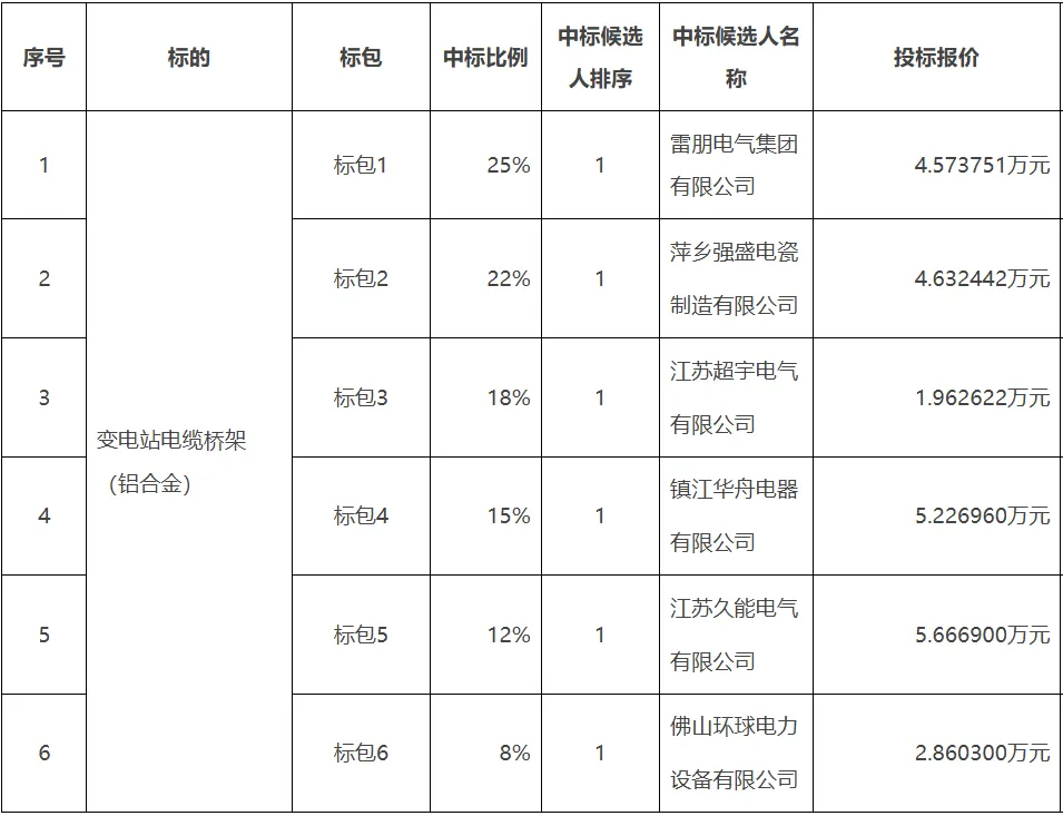 广东电网公司2025年变电站电缆桥架(铝合金)框架招标中标候选人公示