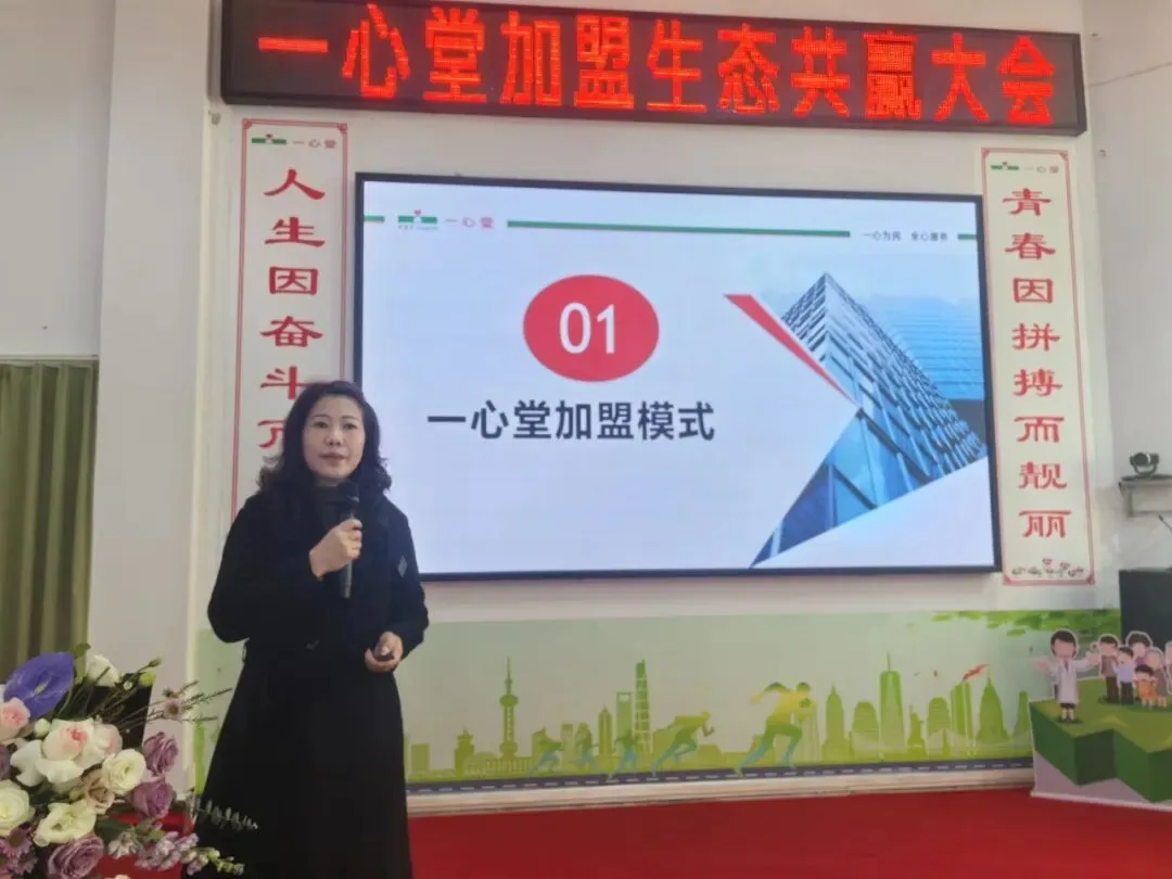 随后,集团发展/加盟中心副总监李跃菊以《借势起航 赢在未来》为题,全面解读了一心堂加盟政策与支持体系。她重点介绍了“直营式七统一”加盟模式,以及通过“品牌力、运营力、专业力、商品力、创新力”构建的五力赋能系统,强调公司将通过强有力的组织保障,持续为加盟商提升经营竞争力,实现稳健发展。