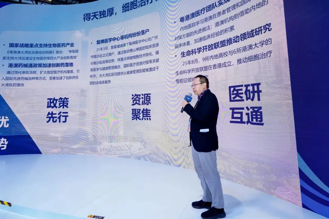 随后,会议聚焦于大湾区细胞治疗的具体实践与患者获益。分享了区域细胞治疗愿景,强调大湾区应充分发挥政策与区位优势,加强医疗资源的整合与协作,“打造细胞治疗的技术与创新高地,让更多患者能就近获得国际水准的诊疗服务”。