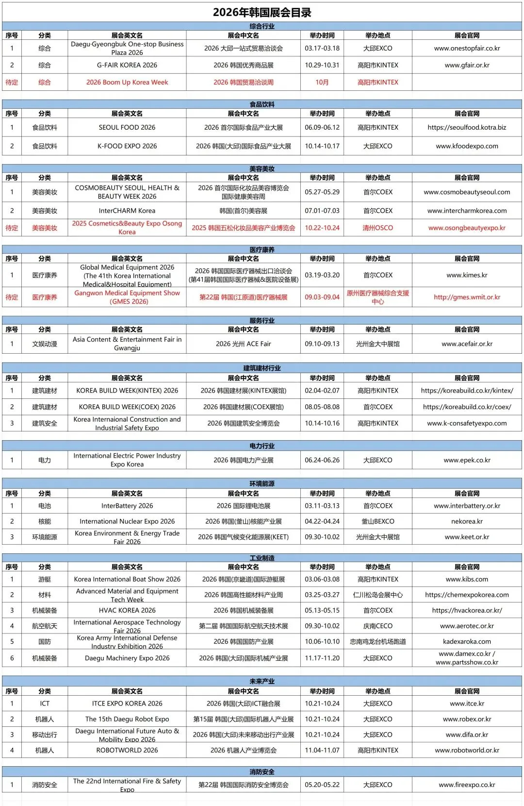【KOTRA沈阳】2026年韩国展会目录_持续更新