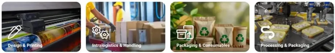 印刷机械:印刷(柔印、凹印、数字印刷)、模切与加工;环保油墨、防伪印刷、可变数据印刷、设计软件(3D建模、打样);标签、打标、编码和身份识别设备;