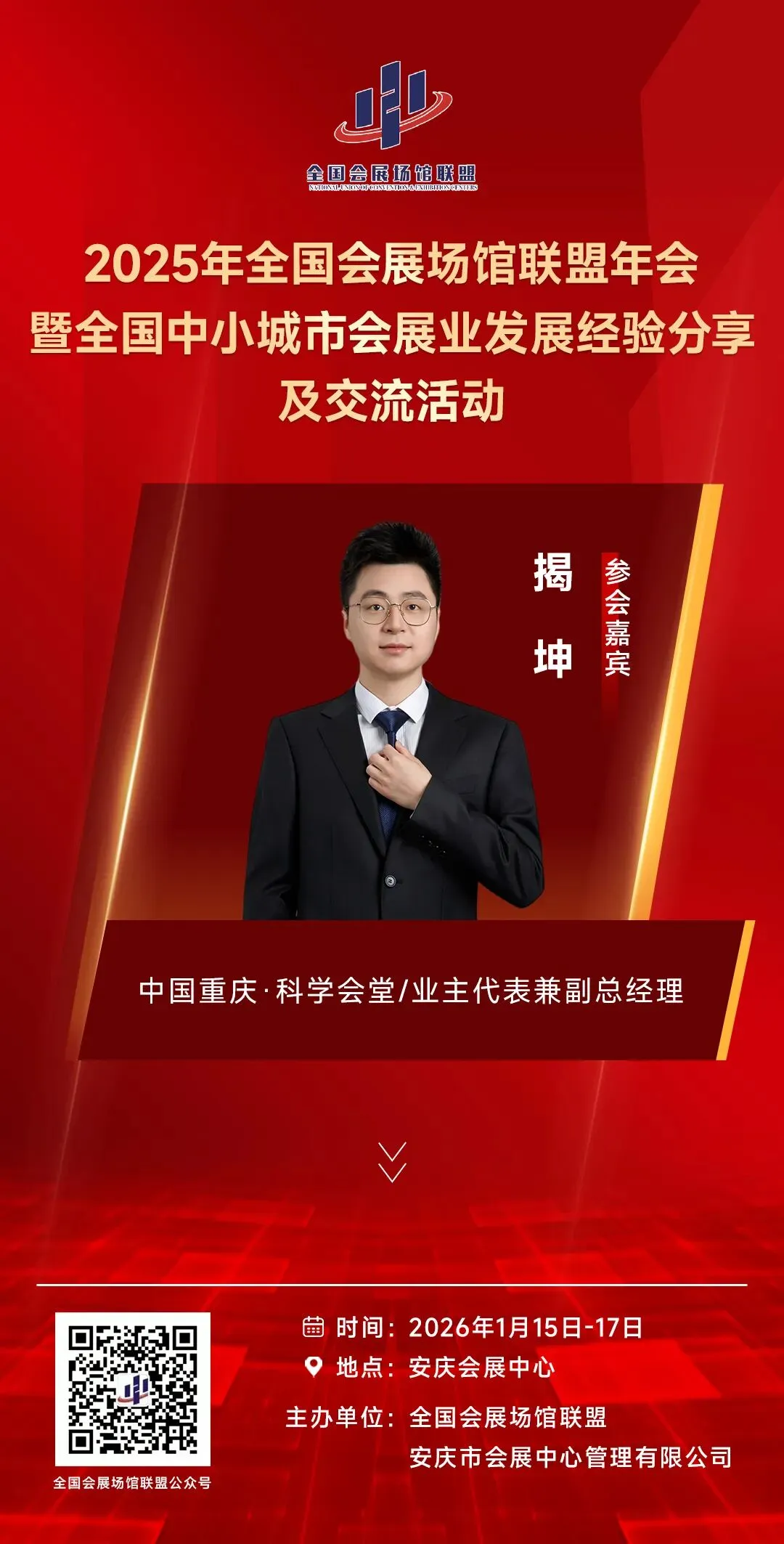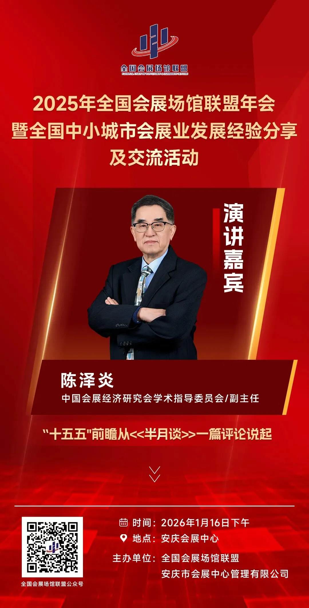 2026年1月15日至17日,2025年全国会展场馆联盟年会暨全国中小城市会展业发展经验分享及交流活动将在安庆会展中心隆重举行。一场汇聚行业智慧、凝聚发展共识的年度盛会已进入最后筹备阶段,全国会展人即将齐聚安庆,共赴这场思想与资源的深度交融之约。