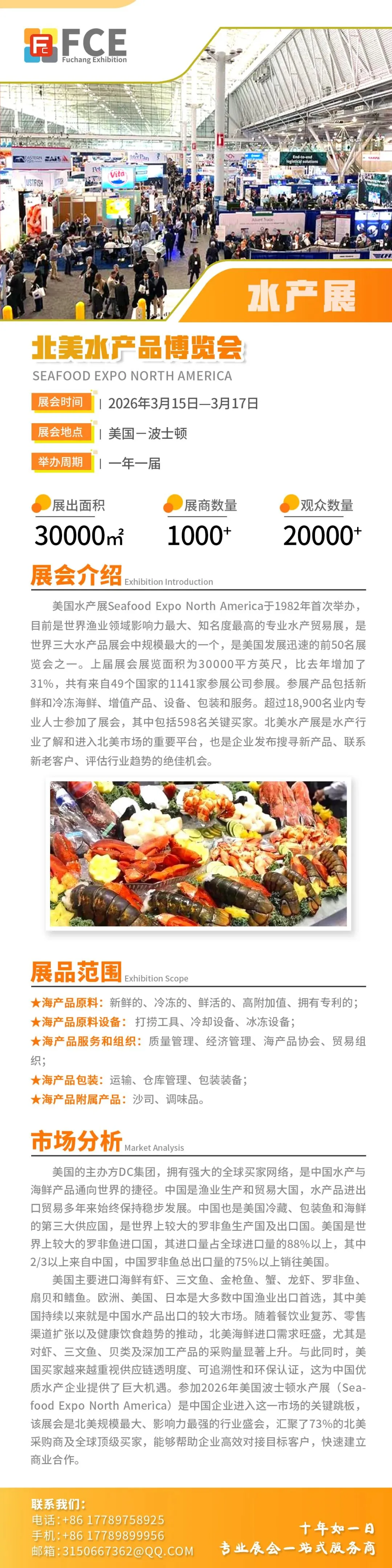 水产展会推荐丨2026年北美水产品博览会 SEAFOOD EXPO NORTH AMERICA