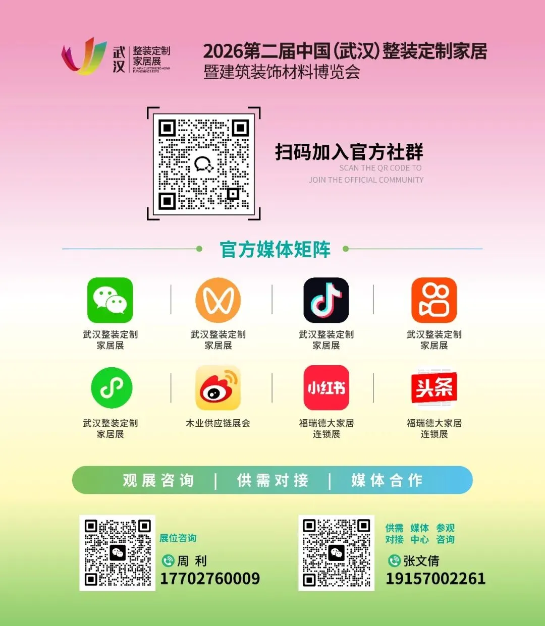 每一次出发,都是为了更好地连接行业;每一次宣传,都是为了共筑行业新生态。从湖北到江西,从河南到安徽,我们的脚步不曾停歇,只为搭建更通达的桥梁,连接更广阔的声音。地推途中收集的每一条需求、每一个建议,都将成为我们优化展会内容的重要依据。2026武汉整装定制家居展的地推之旅仍在继续,我们将带着满满的诚意与专业的服务,走进更多城市。我们诚邀全球家居建材同仁于2026年3月20-22日相聚武汉国际博览中心,共话整装定制新趋势、共寻渠道合作新机遇,携手书写中部大家居产业高质量发展的新篇章!