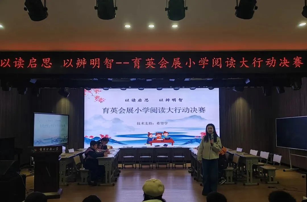2026年1月9日下午,育英会展小学报告厅里掌声、欢呼声此起彼伏——学校联合希望学举办的小学课外阅读知识竞赛火热开赛!各班通过前期的线上答题,选取4名优胜选手参加此次现场决赛。选手们带着阅读积累,在平板答题中拼手速、比思辨,上演了一场精彩的“书香对决”。